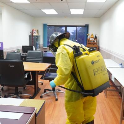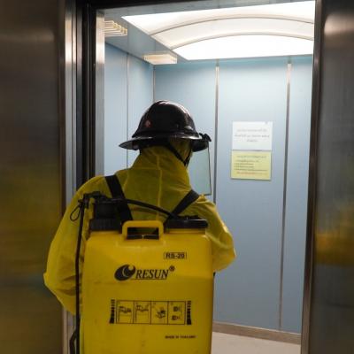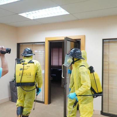 วันที่ 23 เมษายน 2564 เวลา 17.00 น. เจ้าหน้าที่ฝ่ายป้องกันและบรรเทาสาธารณภัย องค์การบริหารส่วนจังหวัดสงขลา เข้าฉีดพ่นน้ำยาฆ่าเชื้อโรค ตามมาตรการป้องกันการระบาดของโรคติดเชื้อไวรัสโคโรน่า 2019 โดยได้ฉีดพ่นน้ำยาฯ ในห้องทำงานผู้บริหาร และห้องทำงานเจ้าหน้าที่ อบจ.สงขลา รวมถึงโต๊ะทำงาน เก้าอี้ พื้นภายในห้องทำงาน พื้นทางเดิน บันไดและราวบันได ลิฟท์ และห้องน้ำ จนครบทั้ง 4 ชั้น