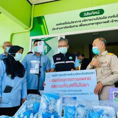 รองนายกอบจ.สงขลา ลงพื้นที่ส่งมอบวัสดุทางการแพทย์และเวชภัณฑ์ สำหรับใช้ในการปฏิบัติงานป้องกันและควบคุมโรคติดต่อ ตามมาตรการป้องกันการแพร่ระบาดของโรคติดเชื้อไวรัสโคโรน่า 2019 (covid-19)