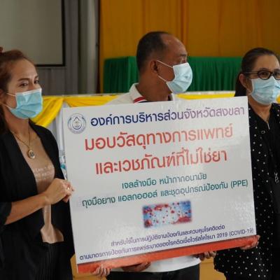 27 เมษายน 2564 เวลา 15:00 น. นายไพเจน มากสุวรรณ์ นายกองค์การบริหารส่วนจังหวัดสงขลา พร้อมด้วย นางสาวปรินดา ปาลาเร่ เลขานุการนายกองค์การบริหารส่วนจังหวัดสงขลา นายอริย์ธัช ทองเพชร ประธาน สมาชิกสภาองค์การบริหารส่วนจังหวัดสงขลา นายเสรี เหล๊าะเหม สมาชิกสภาองค์การบริหารส่วนจังหวัดสงขลา เขต 1 อำเภอจะนะ มอบวัสดุทางการแพทย์และเวชภัณฑ์ ได้แก่ เจลล้างมือ หน้ากากอนามัย เครื่องวัดอุณหภูมิ ถุงมือยาง ชุดอุปกรณ์ป้องกัน (PPE ) สำหรับใช้ในการปฏิบัติงานป้องกันและควบคุมโรคติดต่อ ตามมาตรการป้องกันการแพร่ระบาดของโรคติดต่อไวรัสโคโรน่า 2019 (covid-19) ให้กับสำนักงานสาธารณสุข อำเภอจะนะ จังหวัดสงขลา