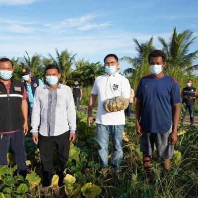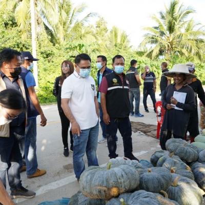 พร้อมกันนี้ นายก อบจ.สงขลา และคณะ พบปะเกษตรกรผู้ปลูกฟักทอง ซึ่งมีแปลงผลิตตั้งอยู่ในพื้นที่ใกล้เคียงกับแปลงพริกเขียวมัน ซึ่งกำลังประสบปัญหาการระบายผลผลิตที่มีเป็นจำนวนมาก โดยได้พูดคุยถึงแนวทางการแก้ปัญหาเบื้องต้น พร้อมทั้งได้อุดหนุนผลผลิตฟักจากแปลงเกษตรกรมาจำนวนหนึ่งเพื่อเป็นขวัญและกำลังใจให้กับเกษตรกรด้วย