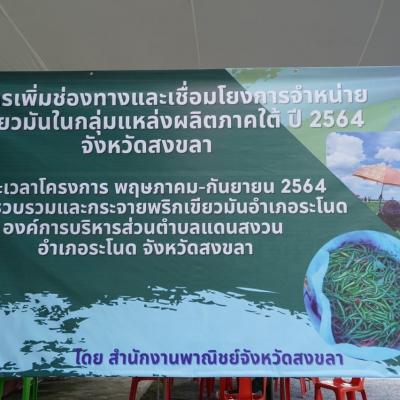 นายกอบจ.สงขลา พร้อมด้วยรองนายกอบจ.สงขลา และส.อบจ. เขตอำเภอระโนด ร่วมฟังการประชุมการดำเนินในระยะแรกของโครงการเพิ่มช่องทางและเชื่อมโยงการจำหน่ายพริกเขียวมันในกลุ่มแหล่งผลิตภาคใต้ 2564