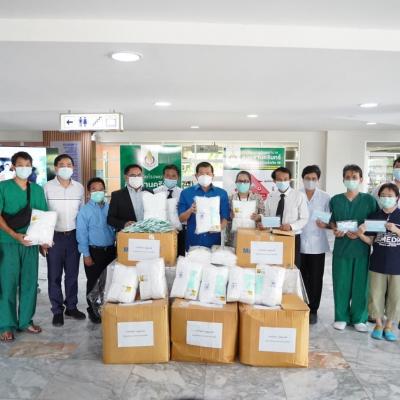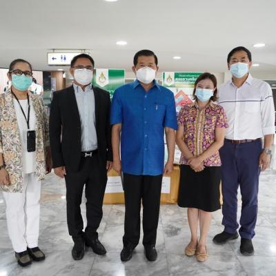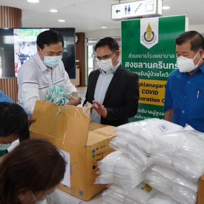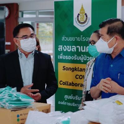 นายกอบจ.สงขลา พร้อมด้วยเลขานุการนายกอบจ.สงขลา และคณะที่ปรึกษาฯข้าร่วมการรับมอบ ชุดคลุมปฏิบัติการป้องกันเชื้อ COVID-19 (PPE) และหน้ากากอนามัย จากรัฐมนตรีช่วยว่าการกระทรวงมหาดไทย ที่ได้นำมามอบให้กับคณะทีมแพทย์