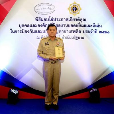 นายก อบจ.สงขลา เข้ารับโล่ประกาศเกียรติคุณบุคคล และองค์กรที่มีผลงานยอดเยี่ยมและดีเด่น ในการป้องกันและแก้ไขปัญหายาเสพติด ประจำปี 2561
