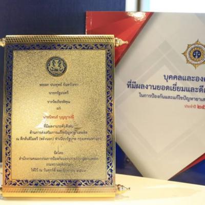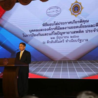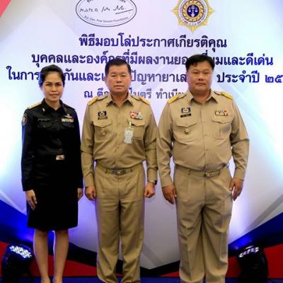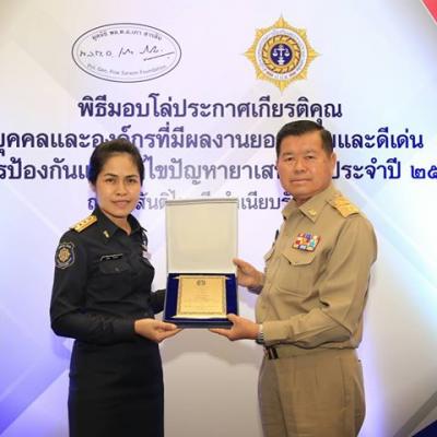 พิธีมอบโล่ประกาศเกียรติคุณบุคคลและองค์กรที่มีผลงานยอดเยี่ยมและดีเด่น ในการป้องกันและแก้ไขปัญหายาเสพติด จัดขึ้นเป็นครั้งที่ 25 โดยสำนักงาน ป.ป.ส.กระ ทรวงยุติธรรมร่วมกับมูลนิธิ พล.ต.อ.เภา สารสิน ในการประกาศเจตนารมณ์ เนื่องในวันต่อต้านยาเสพติดโลกของทุกปี ตามมติของสหประชาชาติ และเพื่อให่เกิดความตระหนักในบทบาทและความสำตัญของบุคคลากรภาครัฐ ภาคเอกชน ภมคประชาชน ตลอดจนเยาวชนและศิลปิน ที่มีจิตอาสา สละเวลาทุ่มเทแรงกายแรงใจ ร่วมกันป้องกันและแก้ไขปัญหายาเสพต ดอย่างจริงจังและต่อเนื่อง.ทั้งเพื่อเป็นการสร้างขวัญกำลังใจ และยกย่องเชิดชูเกียรติแก่บุคคลและองค์กรที่อุทิศตนทำงานด้านยาเสพติด จนมีผลงานเป็นที่ ประจักษ์ ซึ่งในปีนี้มีบุคคลและองค์กรที่ได้รับโล่และใบประกาศเกียรติคุณทุกประเภทจำนวน 193 ราย