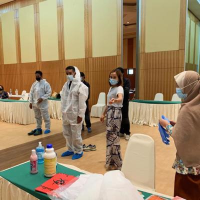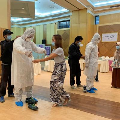 วันที่ 24 พฤษภาคม 2564 นายไพเจน มากสุวรรณ์ นายกองค์การบริหารส่วนจังหวัดสงขลา มอบหมายเจ้าหน้าที่กองส่งเสริมคุณภาพชีวิต ให้คำแนะนำการฉีดพ่นยาฆ่าเชื้อที่ถูกต้องและเหมาะสม พร้อมทั้งได้สาธิตการแต่งกายที่ถูกต้อง รัดกุม ปลอดภัย ให้กับผู้ปฏิบัติงานฉีดพ่นน้ำยาฆ่าเชื้อของสำนักการช่าง โดยจะออกปฏิบัติการฉีดพ่นตามสถานที่ต่าง ๆ เพื่อสร้างความมั่นใจให้กับประชาชนและความมั่นใจในการทำงานที่ปลอดภัยจากการติดเชื้อโควิด-19