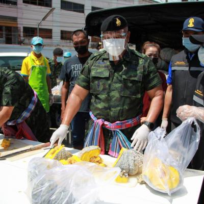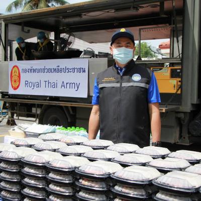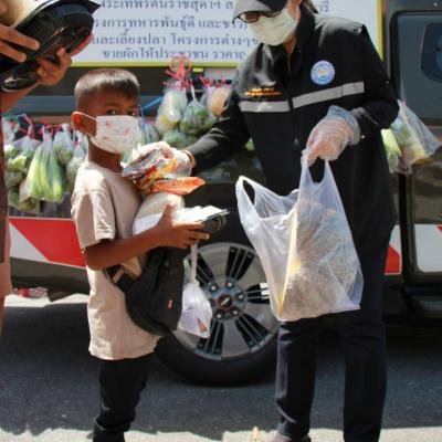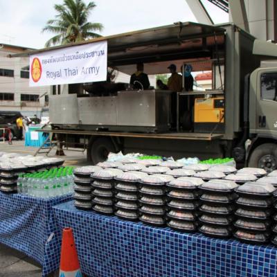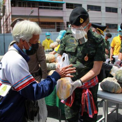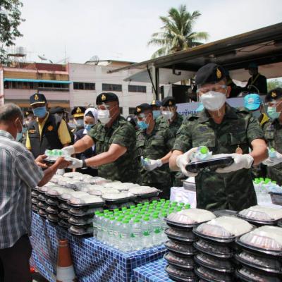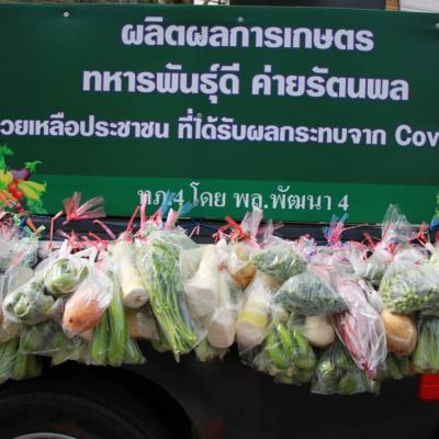 ในการนี้ กองพลพัฒนาที่ 4 ค่ายรัตนพล อำเภอคลองหอยโข่ง จังหวัดสงขลา ได้จัดรถโรงครัวสนาม และรถปันสุขผลิตผลการเกษตร จากฟาร์มตัวอย่างในสมเด็จพระบรมราชชนนี พันปีหลวง อ.คลองหอยโข่ง และโครงการทหารพันธุ์ดี ค่ายรัตนพลมาแจกจ่ายประชาชนที่มารอรับความช่วยเหลือ รวมทั้งได้มอบพันธุ์ปลานิลจิตรลดาจากศูนย์ผลิตพันธุ์ปลาน้ำจืดพระราชทานโครงการทหารพันธุ์ดี ค่ายรัตนพล จำนวน 2,000 ตัว มอบให้กับ โครงการทหารพันธุ์ดีเบิกบาน อาหารปลอดภัย ของ รร.เทศบาล 3, รร.แก้วบุตร และสื่อมวลชนกีฬา พร้อมทั้งจัดชุดปฏิบัติการ Army COVID Buster ฉีดพ่นไฮโดรเจนเปอร์ออกไซด์ 0.5 เปอร์เซ็นต์ ทำความสะอาด ฆ่าเชื้อแบคทีเรียและไวรัส COVID -19 ในพื้นที่ชุมชน และพื้นที่สาธารณะ ณ ต.ปาดังเบซาร์ อ.สะเดา จ.สงขลา เพื่อลดความเสี่ยงการแพร่ระบาดตามมาตรการป้องกัน COVID -19 ของจังหวัดสงขลา และ ศบค.