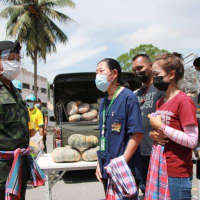 26 พ.ค. 2564 นายนิพัฒน์ อุดมอักษร และนางสาวปรินดา ปาลาเร่ เลขานุการนายกองค์การบริหารส่วนจังหวัดสงขลา ร่วมให้การต้อนรับ พล.อ.พรศักดิ์ พูลสวัสดิ์ ผช.ผบ.ทบ.(1) และ พล.ท..เกรียงไกร ศรีรักษ์ มทภ.4/ผอ.รมน,ภาค 4 สน. ในโอกาสเดินทางลงพื้นที่ชุมชนปาดังเบซาร์ ต.ปาดังเบซาร์ อ.สะเดา จ.สงขลา เพื่อร่วมให้กำลังใจพี่น้องประชาชน ที่ได้รับผลกระทบจากการแพร่ระบาดของเชื้อไวรัส covid-19 โดยมี พล.ต.สิรภพ ศุภวานิช ผบ.พล.พัฒนา 4, นอภ. สะเดา ,นายด่าน ตม.ปาดังเบซาร์ ,ผู้แทน ฉก.ร.5 พร้อมด้วยหน่วยงานราชการ และประชาชนในพื้นที่ จำนวน 220 คน ให้การต้อนรับ พล.อ.พรศักดิ์ พูลสวัสดิ์ ผช.ผบ.ทบ.(1) พร้อมด้วย พล.ท..เกรียงไกร ศรีรักษ์ มทภ.4 ได้นำแจกจ่ายอาหารพร้อมน้ำดื่ม จำนวน 220 ชุด มอบหน้ากากอนามัย, อุปกรณ์กีฬา และผลิตผลการเกษตร / ของบริโภคยังชีพ พร้อมแจกจ่ายฟักทองจำนวน 20 ตัน ที่ มทภ.4 ได้ช่วยได้รับซื้อจากกลุ่มเกษตรกรอำเภอเทพา ที่ได้รับความเดือดร้อน จากภาวะ COVID 19 ระบาด