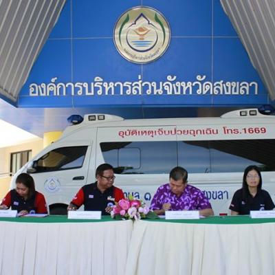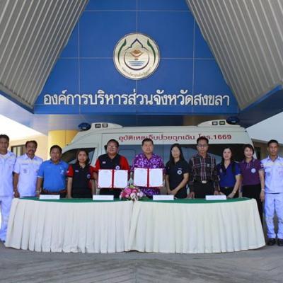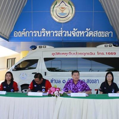 นายก อบจ.สงขลา ทำพิธีลงนามบันทึกข้อตกลงส่งมอบรถบริการแพทย์ฉุกเฉิน