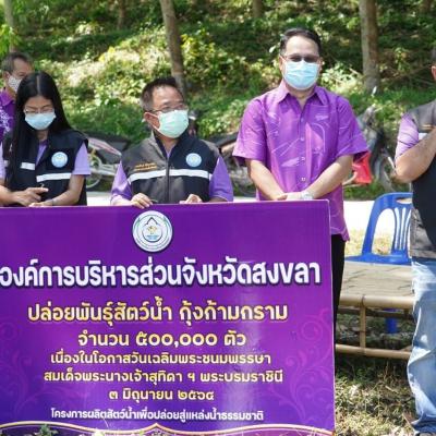 นายกอบจ.สงขลา นำคณะผู้บริหาร สมาชิกส.อบจ.สงขลา หัวหน้าส่วนราชการ บุคลากรของอบจ.สงขลา ผู้นำท้องที่ ผู้นำท้องถิ่น และประชาชนในพื้นที่ร่วมกิจกรรมปล่อยพันธุ์สัตว์น้ำ กุ้งก้ามกราม และปลาตะเพียน รวมทั้งสิ้น จำนวน 700,000 ตัว