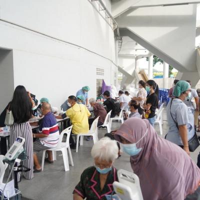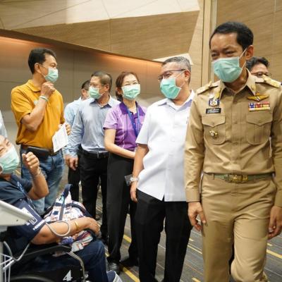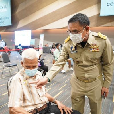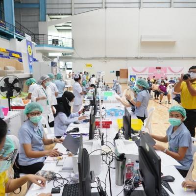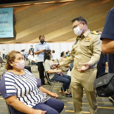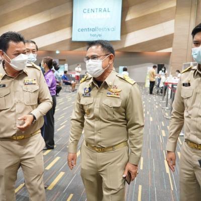 และในเวลา 11.00 น. นายไพเจน มากสุวรรณ์ นายกองค์การบริหารส่วนจังหวัดสงขลา ได้เดินทางต่อเพื่อร่วมกิจกรรม “ชาวสงขลาร่วมใจ ฉีดวัคซีน หยุดเชื้อ เพื่อชาติ” ณ ห้องหาดใหญ่ฮอลล์ ชั้น 5 ศูนย์การค้าเซ็นทรัลเฟสติวัล หาดใหญ่ ซึ่งใช้เป็นสถานที่บริการฉีดวัคซีนป้องกันโรคติดเชื้อไวรัสโคโรนา 2019 ให้กับชาวหาดใหญ่ หลังจากพิธีเปิดกิจกรรม ผู้ว่าราชการจังหวัดสงขลา ได้นำแขกผู้มีเกียรติเยี่ยมชมการปฏิบัติงานของทีมงานบุคลากรทางการแพทย์และทีมจิตอาสา พร้อมให้กำลังใจแก่ผู้มาเข้ารับบริการฉีดวัคซีนฯ ซึ่งการใช้ ห้องหาดใหญ่ฮอลล์ ชั้น 5 ศูนย์การค้าเซ็นทรัลเฟสติวัล หาดใหญ่ เป็นสถานที่ให้บริการฉีดวัคซีนฯ เกิดจากความร่วมมือกันของภาครัฐ และภาคเอกชนในอำเภอหาดใหญ่ ที่ต้องการให้สงขลากลับมาสู่ภาวะปกติให้เร็วที่สุดอีกครั้ง