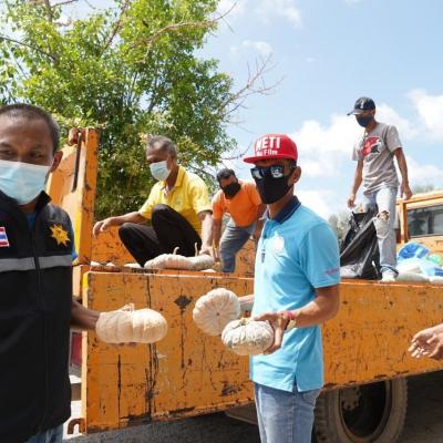 นายกอบจ.สงขลา ร่วมกับส.อบจ. เขต 2 อำเภอนาทวี มอบฟักทอง ฟักเขียว ไข่เป็ด และหน้ากากมัย ให้กับ ผู้นำท้องที่ และผู้นำท้องถิ่น ของ ต.คลองทราย อ.นาทวี จ.สงขลา