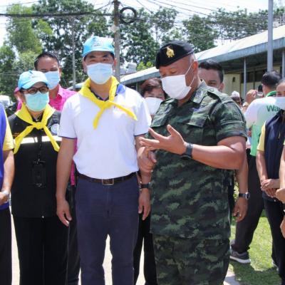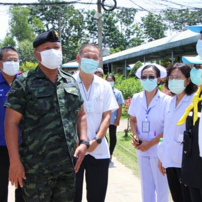 ต่อจากนั้น มทภ.4 ได้พบปะให้กำลังใจแก่ประชาชนที่เข้ามานั่งรอรับการฉีดวัคซีนในบริเวณโรงพยาบาลนาทวี พร้อมมอบเตียงสนามจำนวน 16 เตียงพัดลม 100 กว่า ตัว มุ้ง แมสอานามัย และน้ำขวด ให้แก่โรงพยาบาลนาทวี โดยมีผู้อำนวยการโรงพยาบาลเป็นผู้รับมอบ