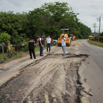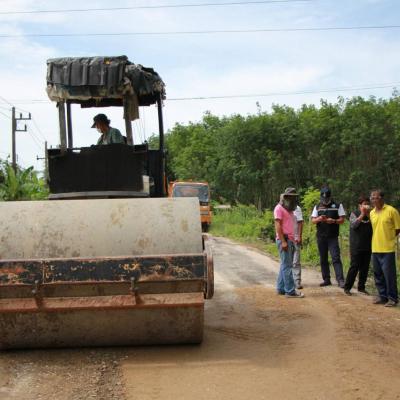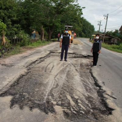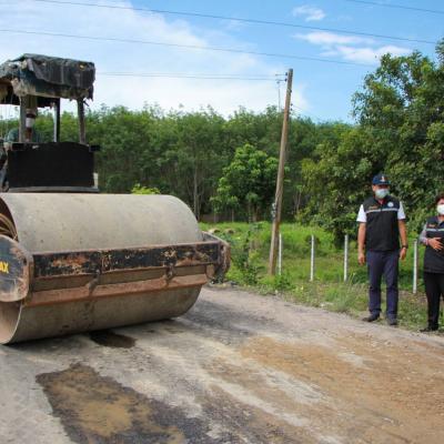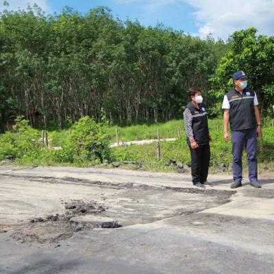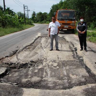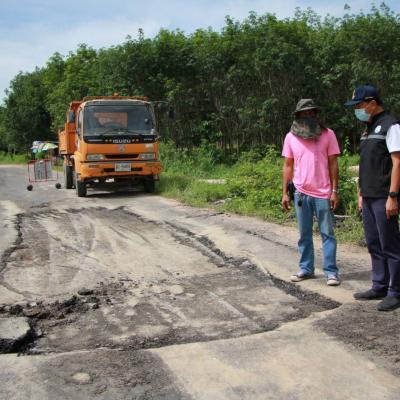 เลขานุการนายก อบจ.สงขลา พร้อมด้วยส.อบจ.สงขลา เขตอำเภอนาทวี และเจ้าหน้าที่กองช่าง ลงพื้นที่ตรวจถนน ณ บ้านวังโต๊ะ สะพานไม้แก่น