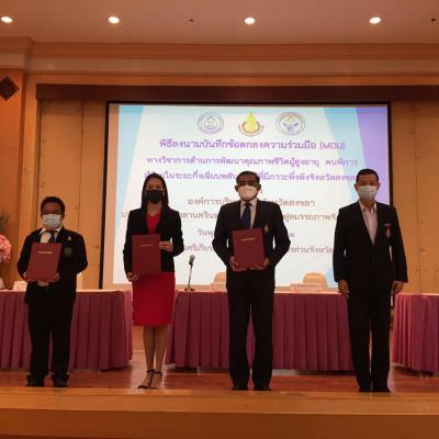 นายกอบจ.สงขลา มอบหมายให้รองนายกอบจ.สงขลา เป็นตัวแทนในพิธีลงนามบันทึกข้อตกลงความร่วมมือทางวิชาการด้านการพัฒนาคุณภาพชีวิตผู้สูงอายุ คนพิการ ผู้ป่วยในระยะกึ่งเฉียบพลัน. และผู้ที่มีภาวะพึ่งพิงจังหวัดสงขลา