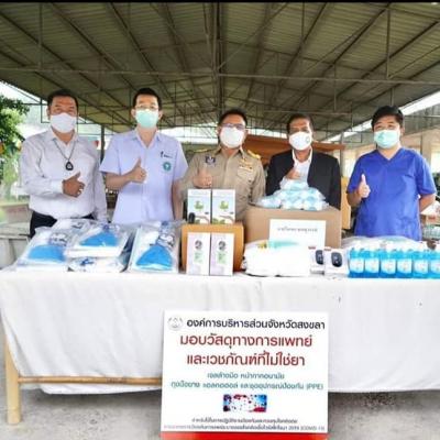 1) สนับสนุนเวชภัณฑ์ไม่ใช่ยา อุปกรณ์ทางการแพทย์ได้แก่ ชุด PPE เครื่องวัดอุณหภูมิ หน้ากากอนามัยทางการแพทย์ ถุงมือยางทางการแพทย์ และเจลแอลกอฮฮล์ แก่หน่วยงานสาธารณสุข ซึ่งอยู่ใกล้ชิดกับประชาชนนำไปใช้ป้องกันและควบคุมโรค ได้แก่ รพ.สต.ทั้ง 175แห่งในจังหวัดส่งขลา ครอบคลุมทั้ง 16 อำเภอ วงเงิน 2,736,300 บาท