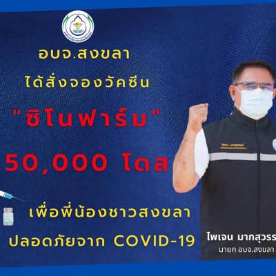 ในส่วน อบจ.สงขลา ได้ดำเนินการประสานข้อมูลกลุ่มเป้าหมายที่มีความจำเป็นต้องได้รับการจัดสรรวัคนอย่างเร่งด่วนร่วมกับสำนักงานสาธารณสุขจังหวัดสงขลาเพื่อป้องกันความซ้ำซ้อนและเพิ่มความครอบคลุมของกลุ่มเป้าหมายในการได้รับวัคนอย่างทั่วถึงทุกพื้นที่ โดย อบจ.สงขลา ได้ดำเนินการสั่งซื้อวัคซีนทางเลือก "ชิโนฟาร์ม"จากราชวิทยาลัยจุฬาภรณ์ จำนวน 50,000 โด๊ส เป็นเงิน 44,400,000 บาท ซึ่งสามารถจัดสรรให้ประชาชนได้จำนวน ซึ่ง อบจ.สงขลา ได้แบ่งกลุ่มเป้าหมายที่ได้รับการฉีดวัคซีนไว้ 5 กลุ่มตามแนวทางของคณะกรรมการควบคุมโรคติดต่อจังหวัดสงขลาและกระทรวงสาธารณสุข ดังนี้