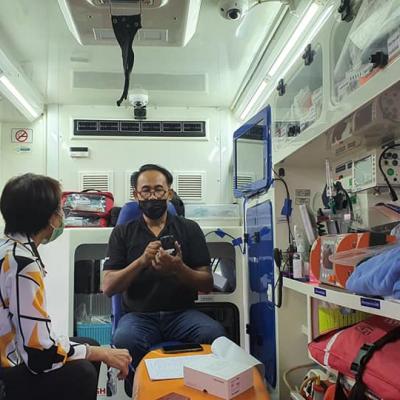 หัวหน้าศูนย์รับแจ้งเหตุและสั่งการฯ ตรวจรับการติดตั้งระบบ Telemedicine ในส่วน Hardware ของรถพยาบาลฉุกเฉินระดับสูง (ALS)