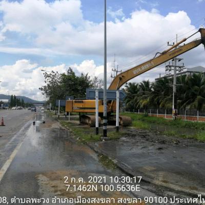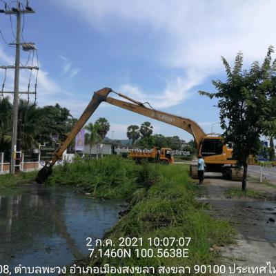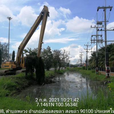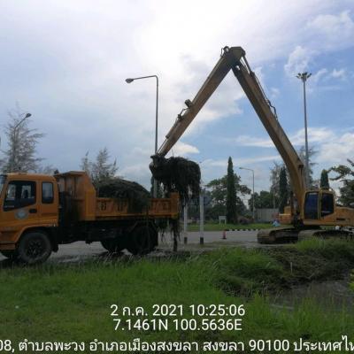 นายกอบจ.สงขลา สั่งการให้เจ้าหน้าที่สำนักการช่าง นำรถแบคโฮดำเนินการกำจัดวัชพืชบริเวณคูระบายน้ำ หน้าการไฟฟ้าส่วนภูมิภาคจังหวัดสงขลา - สำนักทรัพยากรน้ำบาดาล 12 (สงขลา)
