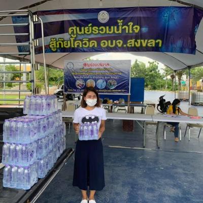 4. นางสาวภพภร ทองคณารักษ์ ผู้อำนวยการกองผังเมือง องค์การบริหารส่วนจังหวัดสงขลา มอบน้ำดื่ม 34 แพ็ค