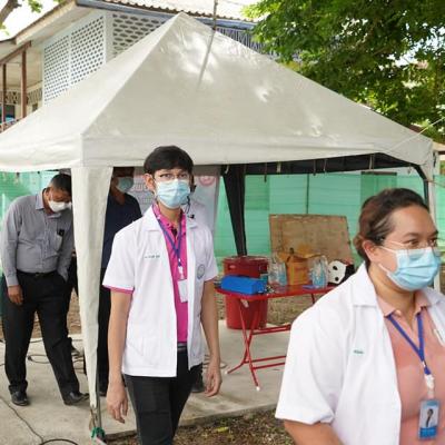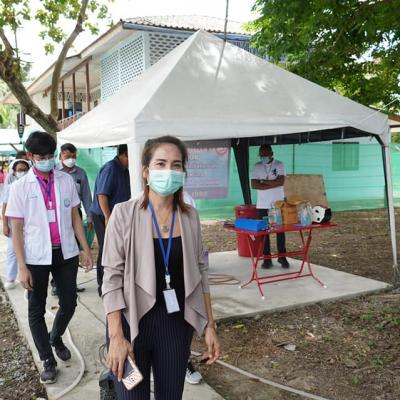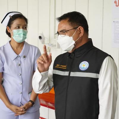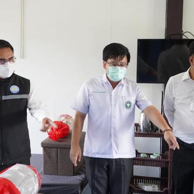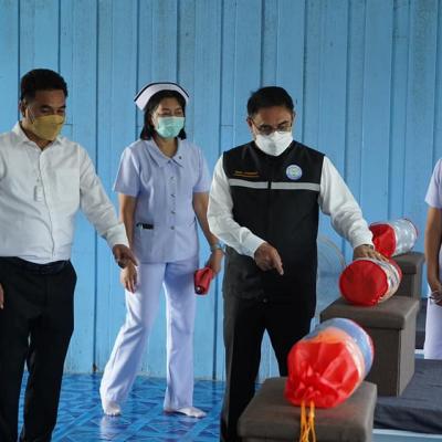นายก อบจ.สงขลา ลงพื้นที่ตรวจความพร้อมของโรงพยาบาลสนาม ในพื้นที่อำเภอสทิงพระ พร้อมส่งมอบชุดเครื่องนอนและหน้ากากอนามัย