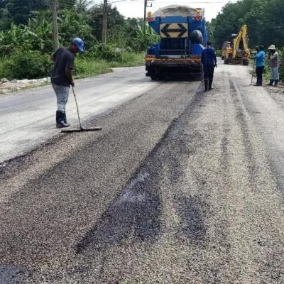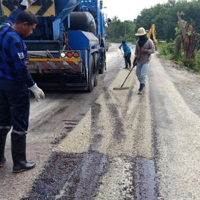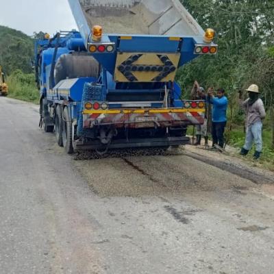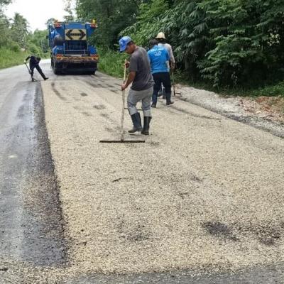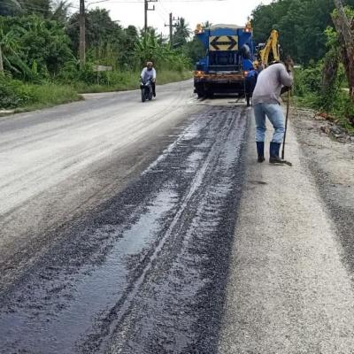 นายกอบจ.สงขลา สั่งการให้เจ้าหน้าที่สำนักการช่าง นำเครื่องจักรกลดำเนินการซ่อมแซมถนนแอสฟัลติกคอนกรีต สาย บ้านวังโต้ ต.นาทวี - บ้านสะพานไม้แก่น ต.สะพานไม้แก่น อ.จะนะ