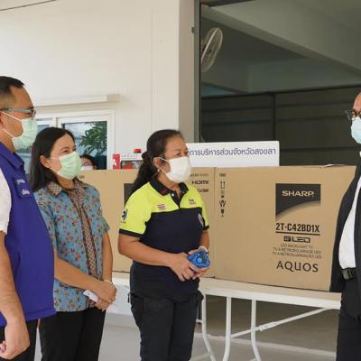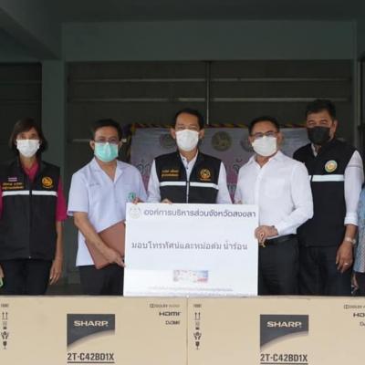 นายกอบจ.สงขลาได้มอบโทรทัศน์ และหม้อต้มน้ำร้อน เพื่อสนับสนุนภารกิจในการปฏิบัติงานของบุคลากรทางการแพทย์ และเจ้าหน้าที่ประจำโรงพยาบาลสนาม โรงพยาบาลควนเนียง
