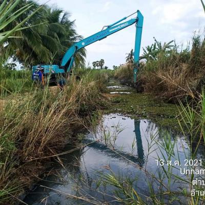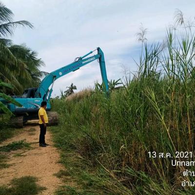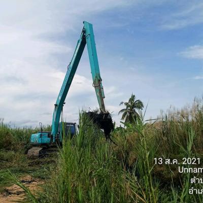 นายกอบจ.สงขลา สั่งการให้เจ้าหน้าที่สำนักการช่าง นำรถแบคโฮเร่งกำจัดวัชพืชขุดลอกดินโคลนขยายร่องน้ำ ณ คลองไส้ไก่ บ้านมหากาฬ ตำบลระโนด อำเภอระโนด