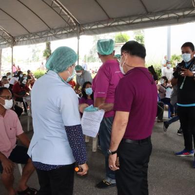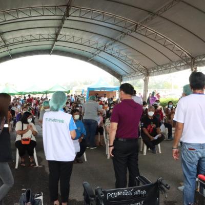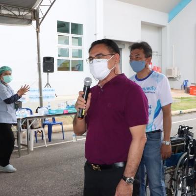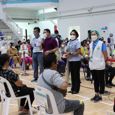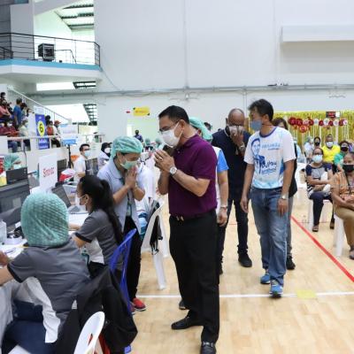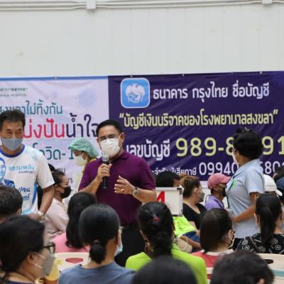 นายกอบจ.สงขลา ลงพื้นที่ โรงยิมเนเซียม สนามกีฬาติณสูลานนท์ องค์การบริหารส่วนจังหวัดสงขลา เพื่อเยี่ยมและให้กำลังใจ เจ้าหน้าที่ และผู้ที่มาเข้ารับบริการฉีดวัคซีนป้องกันโรคโควิด-19