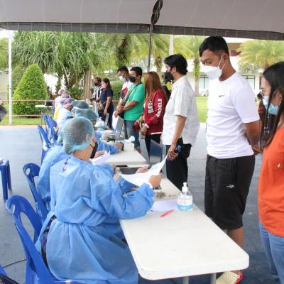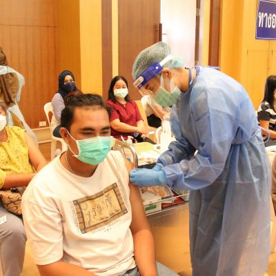 นายกอบจ.สงขลา มอบหมายให้รองนายกอบจ.สงขลา นำคณะผู้บริหาร สมาชิกสภา อบจ.สงขลา และหัวหน้าส่วนราชการ เข้าให้กำลังใจแก่บุคลากรทางการแพทย์ เจ้าหน้าที่ และผู้เข้ารับบริการฉีดวัคซีน ชิโนฟาร์ม ของ อบจ.สงขลา
