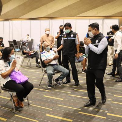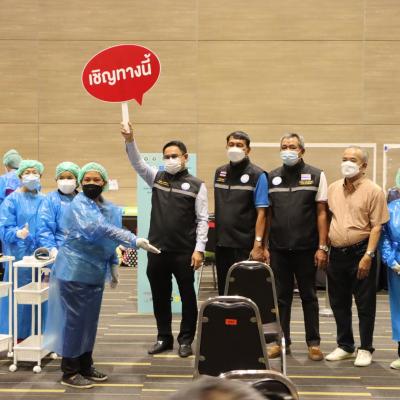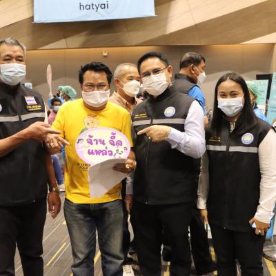 นายกอบจ.สงขลา นำคณะผู้บริหาร สมาชิกสภาองค์การบริหารส่วนจังหวัดสงขลา ร่วมให้กำลังใจ บุคลากรทางการแพทย์ เจ้าหน้าที่ และประชาชนที่เข้ารับบริการการฉีดวัคซีนชิโนฟาร์ม