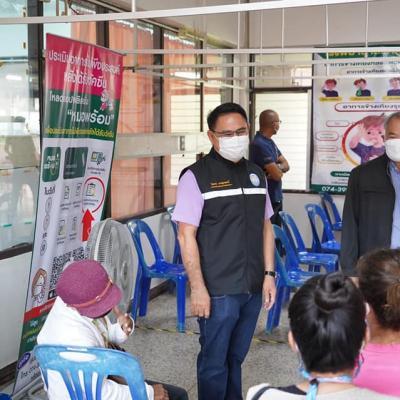 นายไพเจน มากสุวรรณ์ นายกองค์การบริหารส่วนจังหวัดสงขลา ลงพื้นที่เพื่อให้กำลังใจในการปฏิบัติหน้าที่ของบุคลากรทางการแพทย์ และประชาชนที่มารับบริการฉีดวัคซีนป้องกันเชื้อไวรัสโคโรนา 2019 (COVID-19) ณ โรงพยาบาลรัตภูมิ อำเภอรัตภูมิ จังหวัดสงขลา