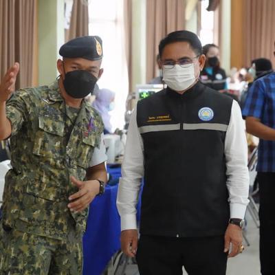 นายกอบจ.สงขลา พร้อมด้วยเลขาฯ ส.อบจ.อำเภอจะนะ เขต 1และนายอำเภอจะนะ ลงพื้นที่อำเภอจะนะ เพื่อให้กำลังใจในการปฏิบัติหน้าที่ของบุคลากรทางการแพทย์ และประชาชนที่มารับบริการฉีดวัคซีนชิโนฟาร์ม