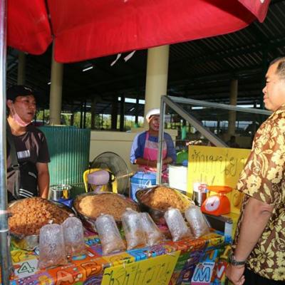 นายก อบจ.สงขลา ตรวจเยี่ยมให้กำลังใจพ่อค้า แม่ค้า ในบริเวณตลาดประชารัฐ (ตลาดโคกไร่ )