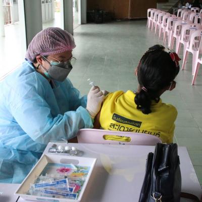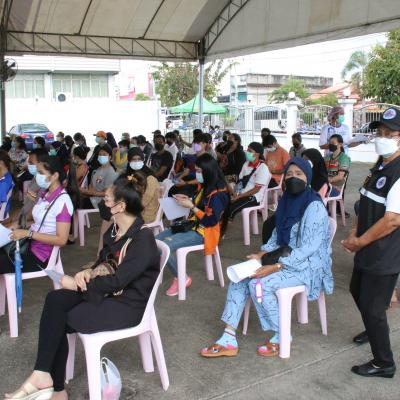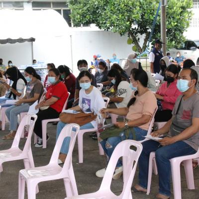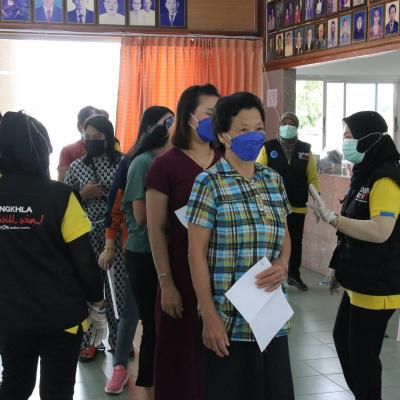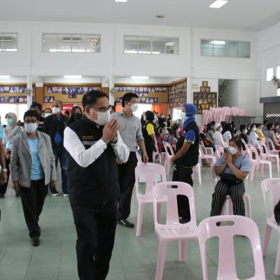 นายกอบจ.สงขลา ลงพื้นที่ ศาลาประชาคมไท่หัวสะเดา เพื่อเยี่ยมและให้กำลังใจบุคลากรทางการแพทย์ เจ้าหน้าที่กองสาธารณสุข และผู้เข้ารับบริการฉีดวัคซีนชิโนฟาร์ม ของ อบจ.สงขลา