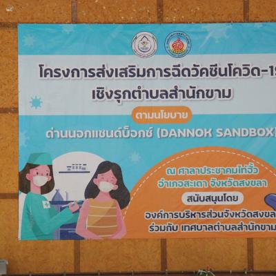 วันที่ 8 ตุลาคม 2564 นายไพเจน มากสุวรรณ์ นายกองค์การบริหารส่วนจังหวัดสงขลา ลงพื้นที่ ศาลาประชาคมไท่หัวสะเดา เพื่อเยี่ยมและให้กำลังใจบุคลากรทางการแพทย์ เจ้าหน้าที่กองสาธารณสุข และผู้เข้ารับบริการฉีดวัคซีนชิโนฟาร์ม ของ อบจ.สงขลา ร่วมกับ เทศบาลเมืองสะเดา และเทศบาลตำบลสำนักขาม ตามนโยบาย โครงการด่านนอกแซนบอกซ์ (Dannok Sandbox) เพื่อสร้างภูมิคุ้มกันหมู่ให้กับอำเภอสะเดา และด่านนอก ให้สามารถกลับมาเป็นเมืองท่องเที่ยว ของจังหวัดสงขลาให้เร็วที่สุด ซึ่งจะส่งผลให้เศรษฐกิจในพื้นที่กลับมาเป็นปกติ ประชาชนกลับมามีรายได้อีกครั้ง