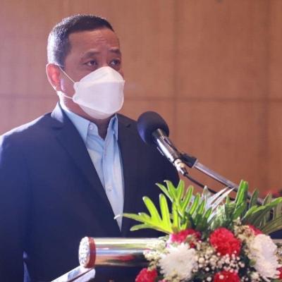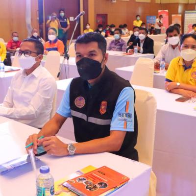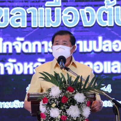 นายไพเจน มากสุวรรณ์ นายก อบจ.สงขลา กล่าวรายงานในฐานะองค์กรสนับสนุนการให้บริการสาธารณะ ร่วมกับสำนักงานส่งเสริมการปกครองส่วนท้องถิ่นจังหวัดสงขลา และสำนักงานป้องกันและบรรเทาสาธารณภัย จังหวัดสงขลา
