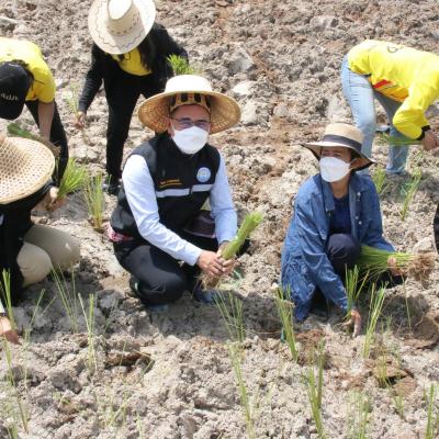 นายกอบจ.สงขลา พร้อมด้วยเลขานุการฯ ร่วมกิจกรรมร่วมแรงทำนากับเกษตรกร และวางแผนการผลิตพืชผลทางการเกษตรภายใต้ ปรัชญาเศรษฐกิจพอเพียง
