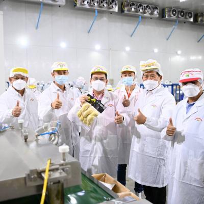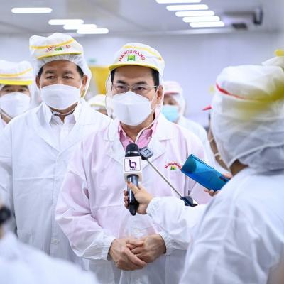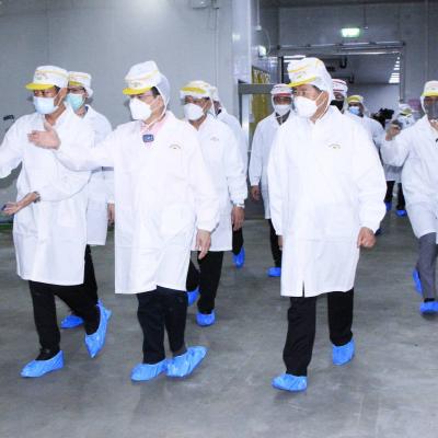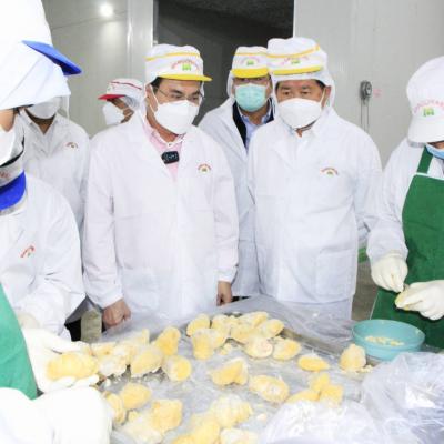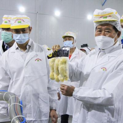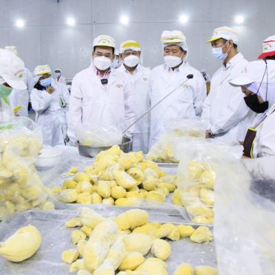 นายจุรินทร์ กล่าวว่า ผลไม้ไทยยังมีอนาคตมากทั้งตลาดในประเทศและตลาดต่างประเทศ ตัวเลขการส่งออกผลไม้ดีขึ้นตามลำดับโดยเฉพาะทุเรียนช่วง 8 เดือนที่ผ่านมา ม.ค.-ส.ค.ปีนี้ ส่งออกไปแล้ว 89,000 ล้านบาท เป็นบวกถึง 76% ที่นี่เป็นตัวอย่างของโรงงานแปรรูปทุเรียนทำทุเรียนแช่แข็ง เพื่อส่งออกไปขายในตลาดต่างประเทศ โดยเฉพาะตลาดจีน รวมทั้งทุเรียนแปรรูปแบบฟรีซดราย เราอยากเห็นโรงงานแบบนี้เกิดขึ้นมากๆ เพราะจะมีส่วนช่วยในการรับซื้อทุเรียนของเกษตรกรได้มากขึ้นราคารับซื้อในช่วงเวลานี้ราคาอยู่ในเกณฑ์ดีมาก กิโลกรัมละ 80-185 (บาท ใกล้เคียงกับทุเรียนภาคตะวันออกในช่วงที่ผ่านมาเพราะเฉลี่ยทุเรียนเกรดส่งออกกิโลกรัมละประมาณ 200 บาท เกษตรกรที่ปลูกทุเรียนมีอนาคตเพียง แต่หัวใจสำคัญขอให้รักษาคุณภาพเพราะจะเป็นตัวช่วยนำไปสู่ความสำเร็จต่อไปในอนาคตทั้งการผลิตและการตลาด หากปลอดจากโควิดแล้วทุกอย่างจะไปได้ดีขึ้น เพราะจะช่วยให้สามารถรับซื้อทุเรียนได้มากขึ้น ส่งออกได้มากขึ้น จะเกิดการจ้างงานมากขึ้น ที่นี่ในช่วงปัจจุบันสามารถจ้างงานได้เกือบ 1,000 คน หากมีโรงงานแบบนี้เกิดขึ้นหลายโรงจะช่วยเรื่องการว่างงาน เท่ากับในจังหวัดชายแดนภาคใต้จะช่วยแก้ปัญหาทั้งเศรษฐกิจ การเมืองและความมั่นคงในเวลาเดียวกันได้ด้วย สำหรับมาตรการส่งเสริมผลไม้เชิงรุก 17+1 ของกระทรวงพาณิชย์ที่เราเตรียมไว้สำหรับฤดูผลผลิตผลไม้ปีหน้า ซึ่งเริ่มต้นปี 65 แต่เราเดินหน้ามาตรการเบื้องต้นไม่รอปัญหาเกิด