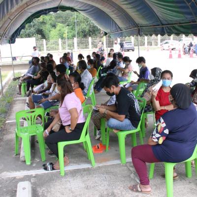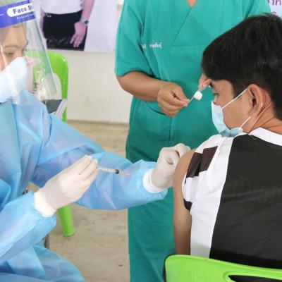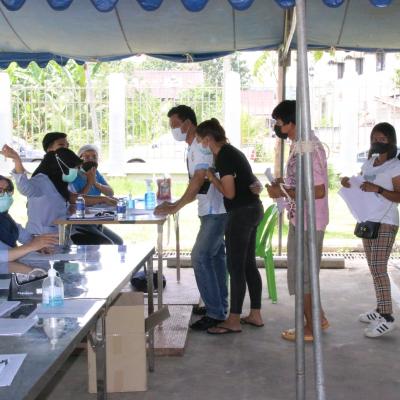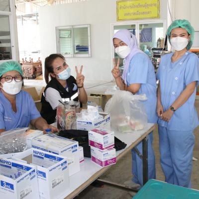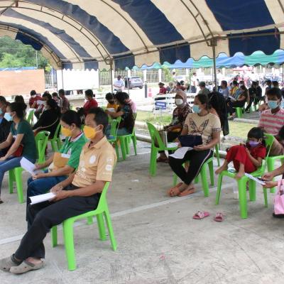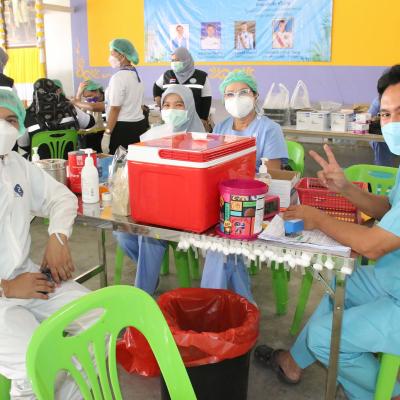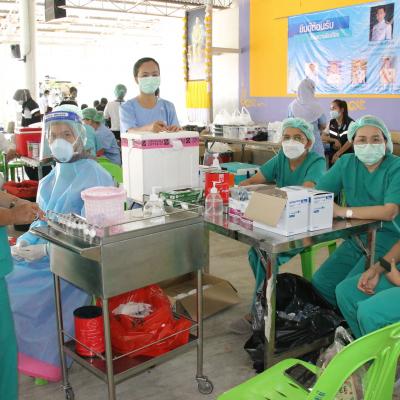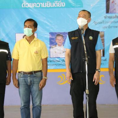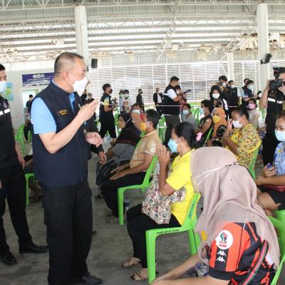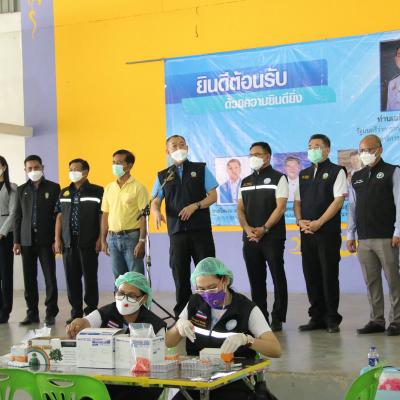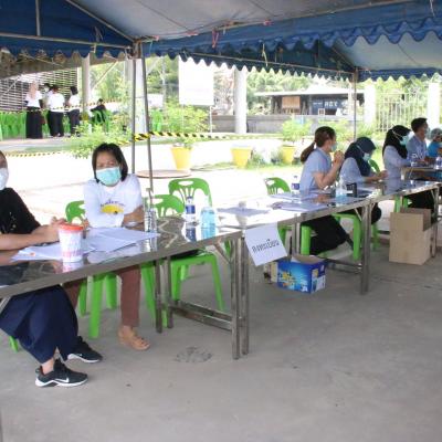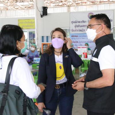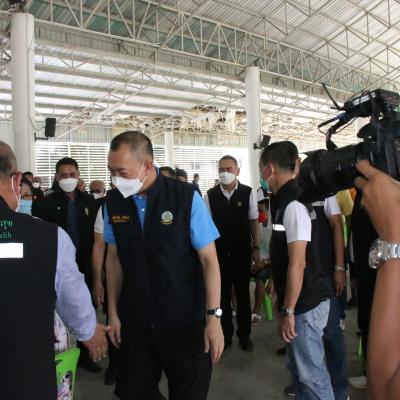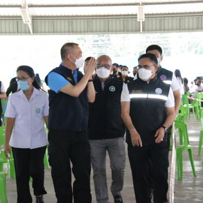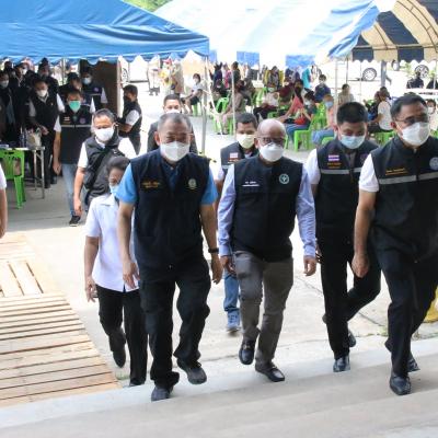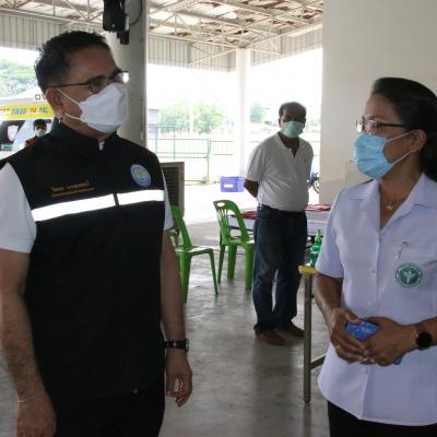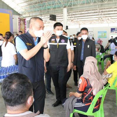 นายกอบจ.สงขลา พร้อมด้วยรองนายกอบจ.สงขลา ลงพื้นที่สนามกีฬาอำเภอสะเดา (ใช้เป็นจุดบริการฉีดวัคซีนชั่วคราว)