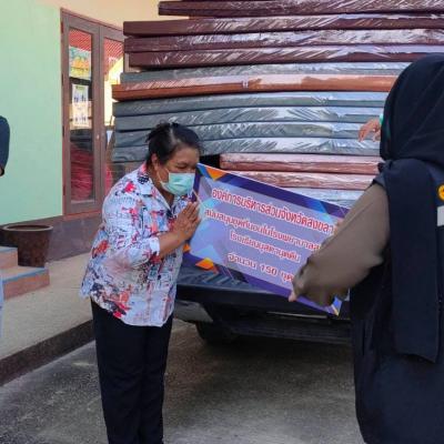 รองนายกอบจ.สงขลา พร้อมด้วยเลขาฯ ลงพื้นที่มอบที่นอนโรงพยาบาลสนาม ณ โรงเรียนบุสตารุสดีน