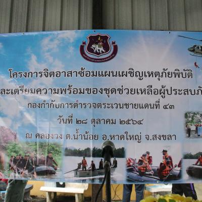 นายกอบจ.สงขลา มอบหมายให้ ที่ปรึกษาฯ ร่วมเป็นเกียรติโครงการจิตอาสาซ้อมแผนเผชิญเหตุภัยพิบัติ ซึ่งจัดโดย กองกำกับการตำรวจตระเวนชายแดนที่ 43