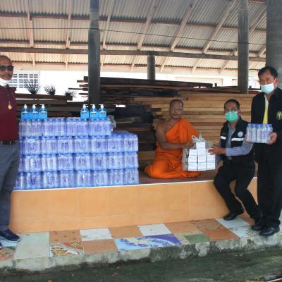 2. วัดมะม่วงหมู่ น้ำดื่ม 1,200 ขวด , หน้ากากอนามัย 10 กล่อง , เจลแอลกอฮอล์ 10 ขวด