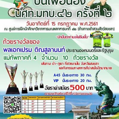 10 กรกฎาคม 2561 นายนิพนธ์ บุญญามณี นายกองค์การบริหารส่วนจังหวัดสงขลา ประธานการประชุมร่วมกับคณะกรรมการมูลนิธิพลเอกเปรม ติณสูลานนท์ และศูนย์ฝึกนักวิชาทหาร มณฑลทหารบกที่ 42 (ศฝ.นศท.มทบ.42) ในการจัดกิจกรรมโครงการปั่นเพื่อน้อง (นศท.) จังหวัดสงขลา ครั้งที่ 2 ณ ห้องวิเชียรคีรี ชั้น 4 องค์การบริหารส่วนจังหวัดสงขลา ต.พะวง อ.เมือง จ.สงขลา โดยเป็นการประชุมเพื่อรายงานความคืบหน้า ของโครงการปั่นเพื่อน้อง (นักศึกษาวิชาทหาร) ซึ่งประกอบด้วยเส้นทางปั่นเพื่อน้อง การดูแลความสะดวกของเส้นทาง การรักษาความปลอดภัย ในเรื่องของถ้วยรางวัล ซึ่งจะมีขึ้นในวันอาทิตย์ที่ 15 กรกฎาคม 2561 ณ ศูนย์ฝึกวิชาทหาร มณฑลทหารบกที่ 42 ชิงถ้วยรางวัล พลเอกเปรม ติณสูลานนท์ ประธานองคมนตรีและรัฐบุรุษ และถ้วยรางวัลจากแม่ทัพภาคที่ 4 จำนวน 10 รางวัล