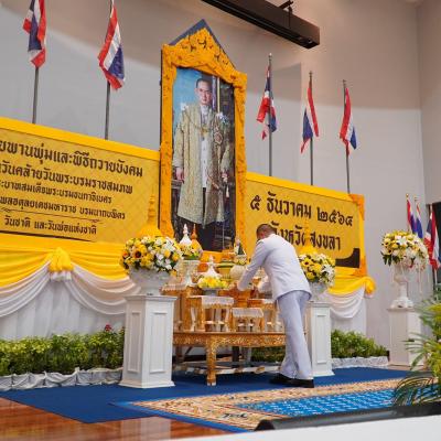 อบจ.สงขลา ร่วมพิธีทำบุญตักบาตร และทำกิจกรรมเพื่อถวายเป็นพระราชกุศล เนื่องในวันคล้ายวันพระบรมราชสมภพ ร.9 และวันพ่อแห่งชาติ