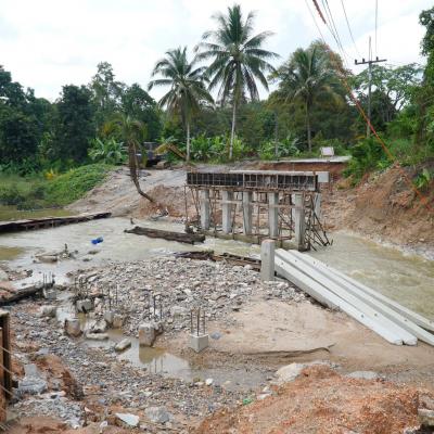 นายกอบจ.สงขลา พร้อมด้วย รักษาการผู้อำนวยการสำนักช่าง ลงพื้นที่ติดตามความคืบหน้างานก่อสะพานข้ามคลองใหญ่ ม.6 บ้านบนควน ต.เขาพระ อ.รัตภูมิ