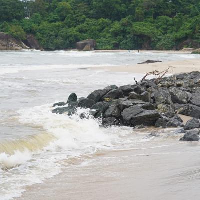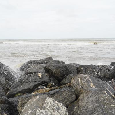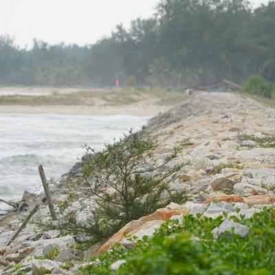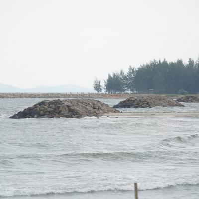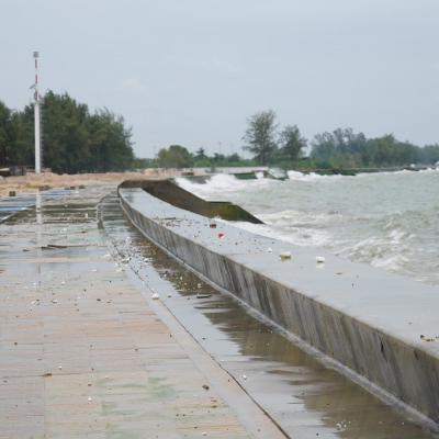จุดที่ 4 ตรวจสภาพพื้นที่บริเวณโครงการก่อสร้างกำแพงกั้นคลื่นชายหาด บ้านโคกศักดิ์ อำเภอสิงหนคร จังหวัดสงขลา
