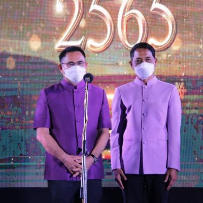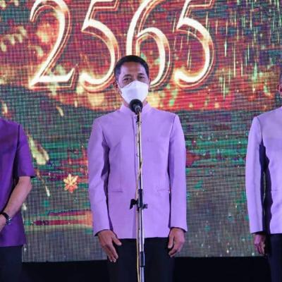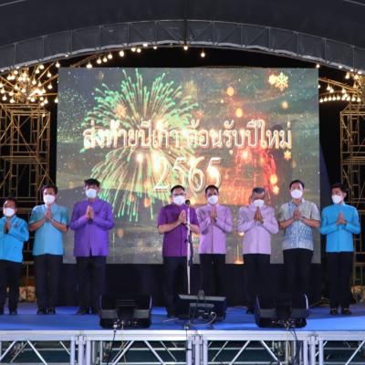 คณะผู้บริหาร หัวหน้าส่วนราชการ และบุคลากร อบจ.สงขลา พร้อมนักท่องเที่ยวที่มาร่วมงาน ร่วมนับถอยหลังเคาท์ดาวน์ในคืนข้ามปี "ส่งท้ายปีเก่า ต้อนรับปีใหม่ 2565" โดยพร้อมเพรียงกัน