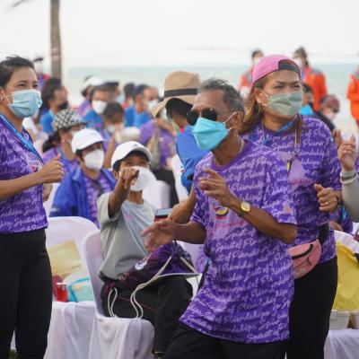 นายกเทศมนตรีนครสงขลา / นายกสมาคมกีฬาจังหวัดสงขลา / หัวหน้าส่วนราชการ / ประช่าชนชาวจังหวัดสงขลา และทัพนักกีฬาผู้สูงอายุ ร่วมในพิธีเปิด กับบรรยากาศริมทะเล หาดชลาทัศน์ เมืองสงขลา