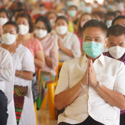 นายไพเจน มากสุวรรณ์ นายกองค์การบริหารส่วนจังหวัดสงขลา ร่วมในพิธีทอดผ้าป่ามหากุศล ครั้งที่ 1 เพื่อจัดหาทุนในการจัดซื้อต้นไม้ในพุทธประวัติเเละปรับภูมิทัศน์ในพื้นที่ของพุทธมณฑลจังหวัดสงขลา