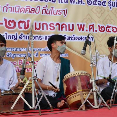 ซึ่ง อบจ.สงขลา ร่วมกับสมาคมศิลปินพื้นบ้านจังหวัดสงขลา จัดขึ้น ระหว่างวันที่ 26 – 27 ม.ค.65 โดยมีการอบรมให้ความรู้ หลักสูตรการรำโนราแบบโบราณ และหลักสูตรศึกษาเรียนรู้พิธีกรรมและขนบนิยมโนราโบราณ